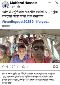 রূপালী ব্যাংকের বিভিন্ন শাখায় খোঁজ নিয়ে এ ঘটনার সত্যতা নিশ্চিত হওয়া গেছে। একই দিন সকাল ১১টা ২৪ মিনিটে যশোরের বাগআচড়া শাখার ব্যবস্থাপক মো. মোফাজ্জল হোসেন তার ব্যক্তিগত ফেসবুক অ্যাকাউন্টে একটি সেলফি পোস্ট করেন, যেখানে তিনি ভ্রমণের উদ্দেশ্যে যাত্রার বিষয়টি উল্লেখ করেন। একটি বাসের সিটে বসা অবস্থায় তিনি পোস্টে লেখেন, ‘আলহামদুলিল্লাহ বরিশাল ভোলা, মনপুরা ভ্রমনের জন্য যাত্রা শুরু করলাম’। ওই ছবির পেছনে যারা বসেছিলেন তারা অধিকাংশই বিভিন্ন শাখার ব্যবস্থাপক বলে সংশ্লিষ্ট সূত্র জানায়। এরপর এ নিয়ে তোলপাড় শুরু। ¯