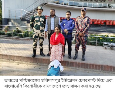 ভারতের পশ্চিমবঙ্গের হারিদাসপুর ইমিগ্রেশন চেকপোস্ট (আইসিপি) দিয়ে এক বাংলাদেশি কিশোরীকে আনুষ্ঠানিকভাবে বাংলাদেশে প্রত্যাবাসন করা হয়েছে।